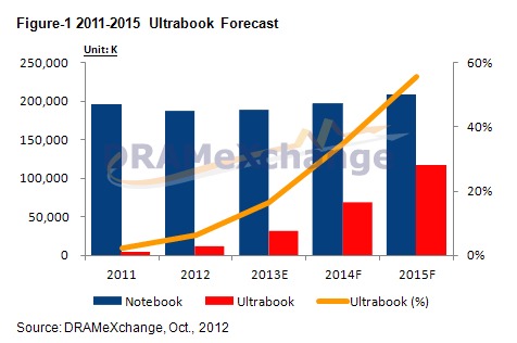 DRAMeXchange prevede in ogni caso buoni risultati complessivi per il 2013, con una stima di 30 milioni di sistemi venduti. Se confermati, dati di questo tipo implicheranno un aumento delle vendite molto rilevante rispetto a quanto registrato nel corso del 2012, con una quota complessiva del 17% rispetto al totale delle soluzioni notebook.