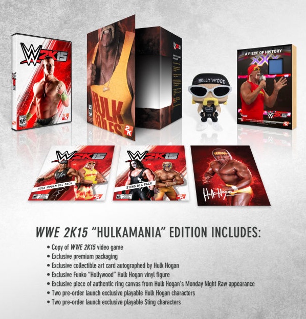 2K Sports ha annunciato l'edizione WWE 2K15 Hulkamania, in vendita a 99,99 dollari, che sarà disponibile in esclusiva per Xbox One e PlayStation 4, in tiratura limitata a 25.000 copie.